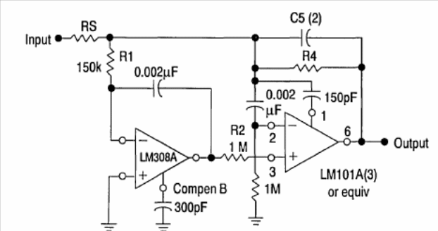 This circuit is from the 1993 Motorola Linear Interface ICs. Equivalent operating may be used and the source must be symmetrical. The bandwidth is 250 kHz and for small 3.5 MHz signals.