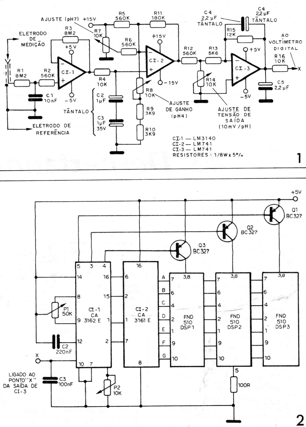 This 1989 documentation circuit uses a digital display with components that are uncommon today, but adaptations can be made to employ a more modern solution, including microcontrolled. The circuit requires the use of special electrodes for this purpose, the type employed in professional meters. The power supply must be symmetrical.