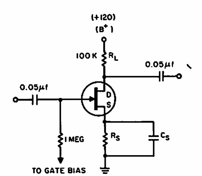 This configuration is from a 1964 US documentation valid for any FET. The range of power voltages depends on the application.