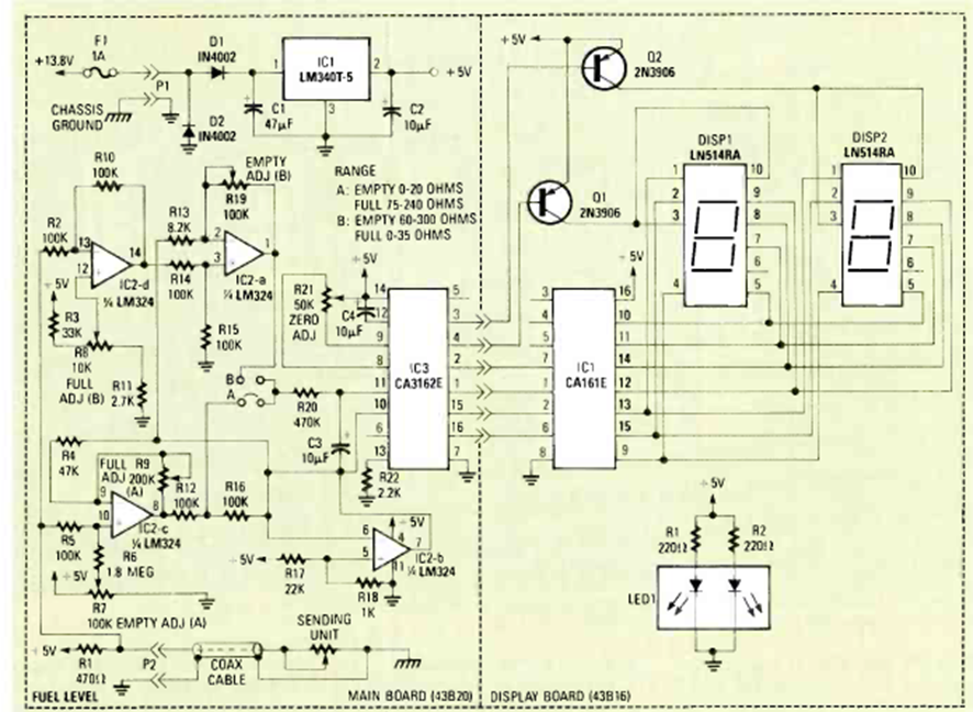 Based on the CA3161 and CA3162, this circuit was found in the July 1990 Radio Electronics magazine. The circuit is two digits only.