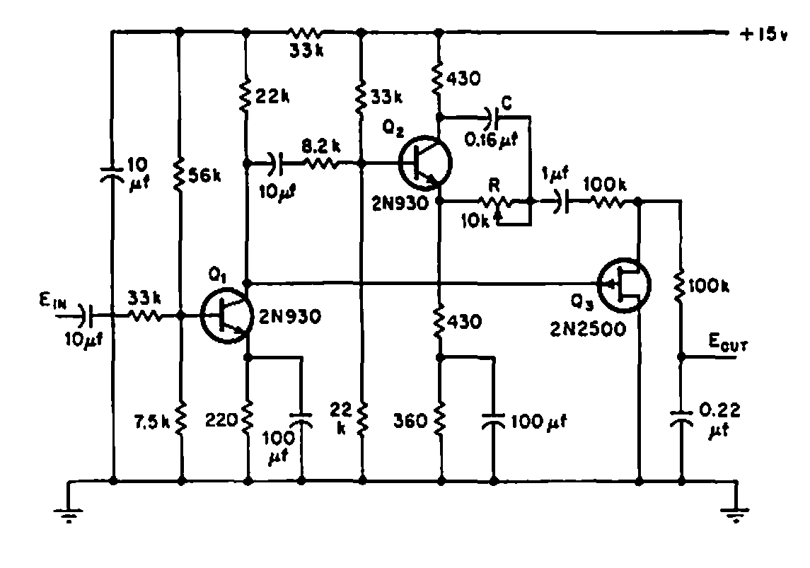 This circuit is suggested by American documentation from 1970. It makes use of transistors of the time but can be implemented with modern equivalent transistors.