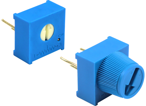 Vishay / Sfernice M61 3/8" Square Single-Turn Cermet Trimmers are offered in several pin configurations for top or side adjustment and with a selection of knob styles for finger setting. These trimming potentiometers enable the easy adjustment of resistance values through physical manipulation and provide stability after being assembled on the PCB. The M61 series features a wide ohmic range from 10Ω to 2MΩ in an industrial-grade design with through-hole mounting. Options include an extended shaft and a cross-slot rotor. Vishay / Sfernice M61 3/8" Square Single-Turn Cermet Trimmers are designed to be lead free and RoHS compliant.